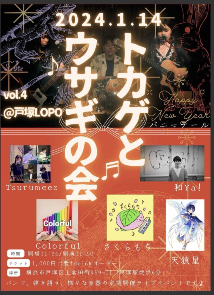 1/14(日)バニーテール企画、「トカゲとウサギの会」at 戸塚LOPOに出演!