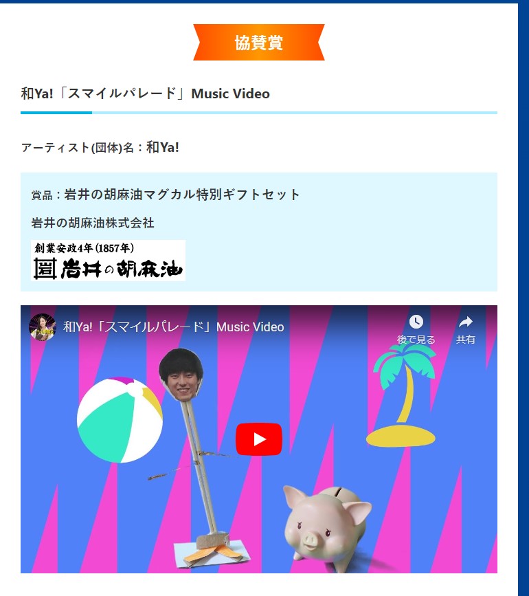2/03(土)バーチャル開放区で岩井の胡麻油さんから協賛賞を受賞!